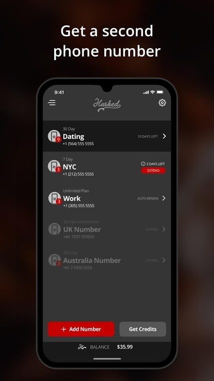 Mantén tus conversaciones privadas con Hushed, aplicación que no solo proporciona un segundo número de teléfono, sino que también ofrece números locales para más de 60 países, como Estados Unidos, Canadá, Reino Unido, Australia, España, México y Brasil. El número de teléfono adicional funciona para llamadas y mensajes de texto privados —te permite camuflar tu identificación—, y luego desecharlo cuando hayas terminado.