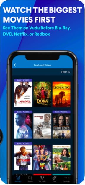 Vudu es una excelente aplicación gratuita para ver miles de películas de forma gratuita utilizando tu teléfono inteligente y otros dispositivos. Además, ofrece una variada selección de programas de televisión que abarcan múltiples géneros. La interfaz cuenta con un diseño claro y es de fácil navegación. Los programas y películas están organizados según categoría, por lo que todo lo que tienes que hacer es navegar, tocar un título y ver.