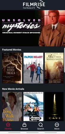 Ni siquiera necesitas crear una cuenta para disfrutar cientos de programas de televisión y películas sin pagar nada en Filmrise. Simplemente descarga la app y podrás ver películas en alta definición de una gran cantidad de géneros, como terror, romance, comedia y thrillers. También cuenta con una amplia selección de programas de TV (aunque quizás no encuentres los estrenos más recientes).