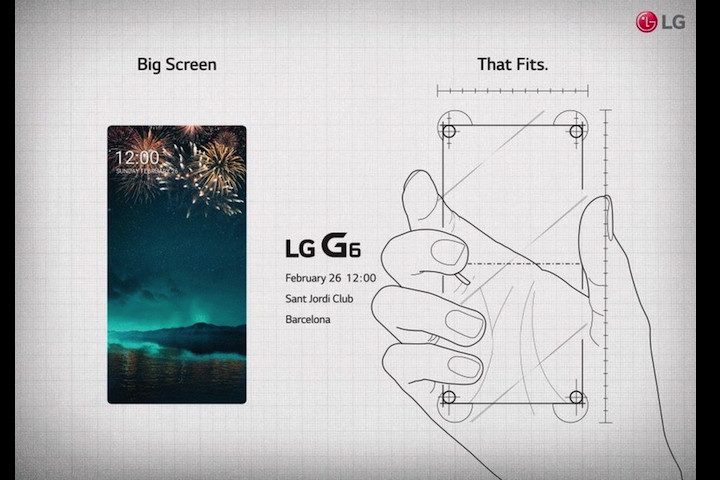 En la invitación que se muestra el nuevo LG frente a una imagen esbozada de una mano agarrando el teléfono. La imagen de la pantalla se ajusta exactamente con el contorno del teléfono, lo que indica que el G6 no tendrá casi bisel en absoluto. Las palabras, “Gran pantalla. Encaja”, acompaña ambas imágenes.