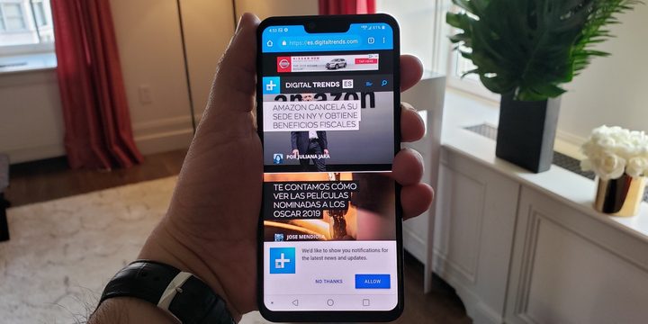 El LG G8 ThinQ es un teléfono de muy buen aspecto; ofrece una pantalla de borde a borde de 6.1 pulgadas, aunque hay una muesca en la parte superior y una “barbilla” en la inferior. Aparte de eso, tiene una balanceada relación entre pantalla y cuerpo que hará feliz a quién lo compre.