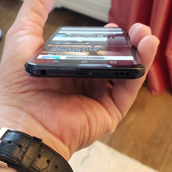 Curiosamente, la muesca en la parte superior no es para un altavoz sino solo para la cámara. Vete olvidándote de bocinas y altavoces: el G8 ThinQ utiliza la nueva tecnología Crystal Sound OLED, o CSO, de LG, en la que un vibrador piezoeléctrico ubicado detrás de la pantalla reemplaza al auricular. Eso sí, todavía hay un pequeño altavoz en la parte inferior, el cual le permite obtener sonido estéreo. Pero la pantalla vibra en volúmenes más altos cuando usas CSO, y cuando presionas el dispositivo contra tu oído, es casi como una tecnología de conducción ósea, lo cual resulta muy útil en entornos ruidosos.