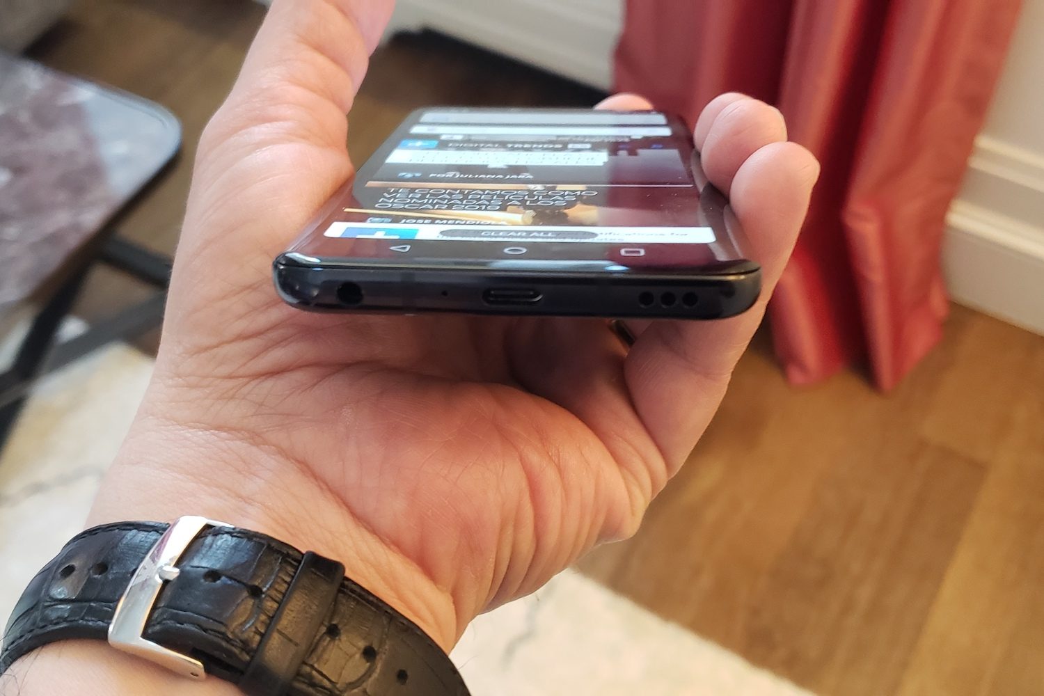 Curiosamente, la muesca en la parte superior no es para un altavoz sino solo para la cámara. Vete olvidándote de bocinas y altavoces: el G8 ThinQ utiliza la nueva tecnología Crystal Sound OLED, o CSO, de LG, en la que un vibrador piezoeléctrico ubicado detrás de la pantalla reemplaza al auricular. Eso sí, todavía hay un pequeño altavoz en la parte inferior, el cual le permite obtener sonido estéreo. Pero la pantalla vibra en volúmenes más altos cuando usas CSO, y cuando presionas el dispositivo contra tu oído, es casi como una tecnología de conducción ósea, lo cual resulta muy útil en entornos ruidosos.