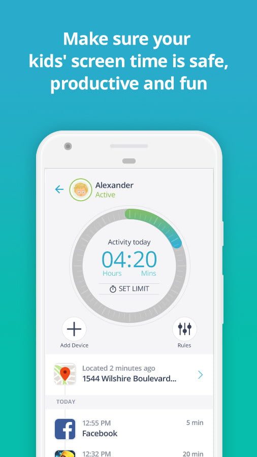 Algunas de nuestras aplicaciones de antivirus favoritas también tienen buenos controles parentales. Kaspersky Safe Kids cae directamente en esa categoría. La aplicación para niños viene con todo lo que deseas de una aplicación de control parental, incluidas las herramientas para administrar y monitorear el tiempo de pantalla, la capacidad de ver su ubicación en tiempo real (con geofencing) y el nivel de batería, y el monitoreo de la actividad de Facebook. Puede bloquear el acceso a sitios web, aplicaciones y juegos inapropiados, y hay consejos de expertos de psicoanalistas infantiles para las cosas realmente difíciles. Desafortunadamente, las limitaciones dentro de iOS significan que no todas estas opciones están disponibles para iPads y iPhones.