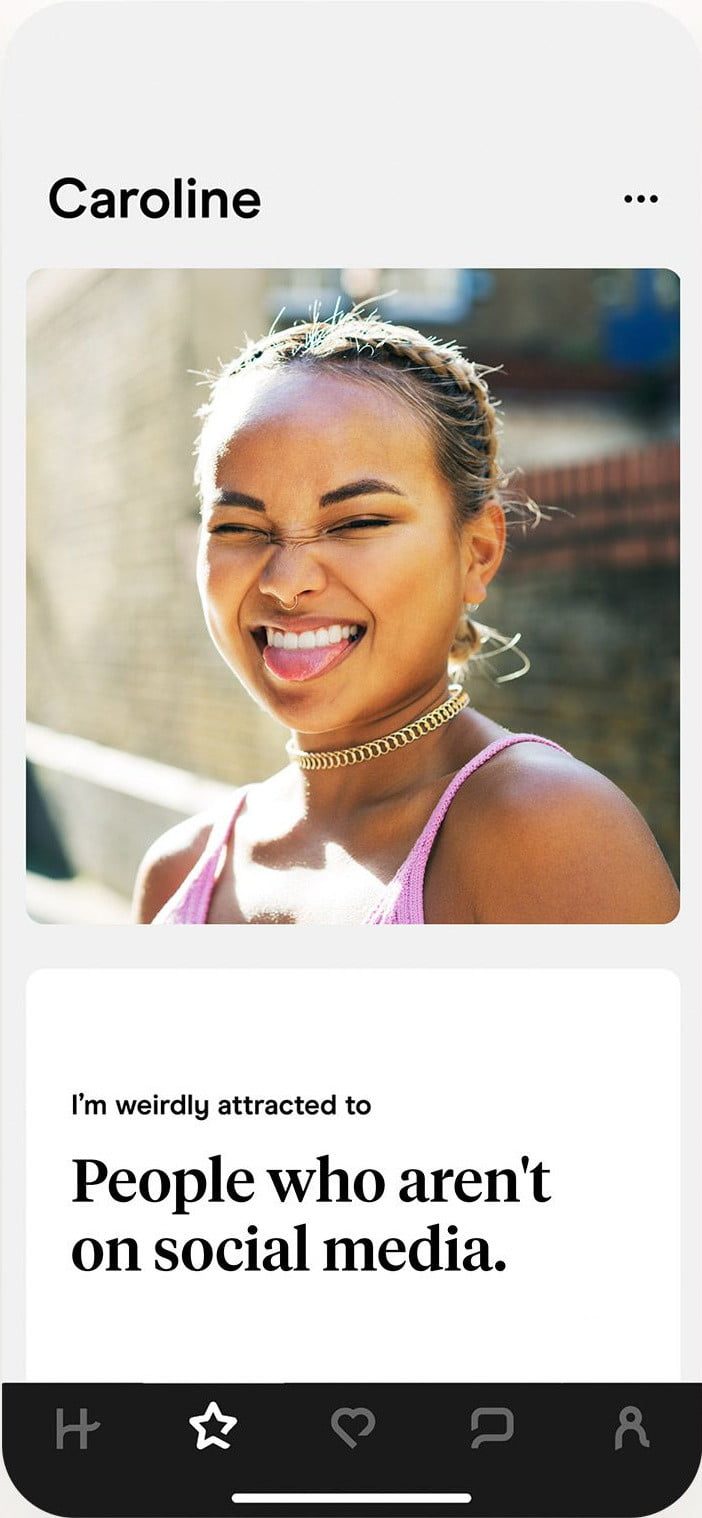 Bumble era conocido por cambiar el paradigma de las citas tradicionales, haciendo que si hacías match las mujeres tuvieran que dar el primer paso iniciando la conversación, sin embargo actualmente Bumble se ha nutrido con un montón de funciones para que conectar con alguien afín sea más una cuestión de pulir tus gustos y llamar la atención de otra persona con super likes o cumplidos. Y si bien funciona para relaciones heterosexuales, aquí básicamente podrías encontrar de todo, incluso solo amistad.