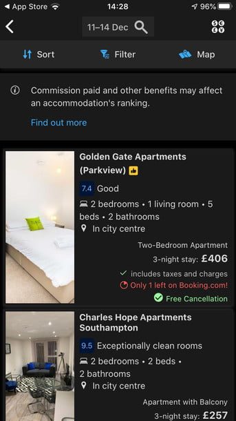 Si necesitas rápidamente una habitación de hotel, Booking.com tiene lo que necesitas. Cuenta con más de 27 millones de hoteles, hostales y más, además de más de 135 millones de reseñas verificadas. Puedes filtrar por precio, puntaje de revisión e incluso calidad de wifi (un puntaje cada vez más importante). También puedes reservar a último minuto o con mucha anticipación.