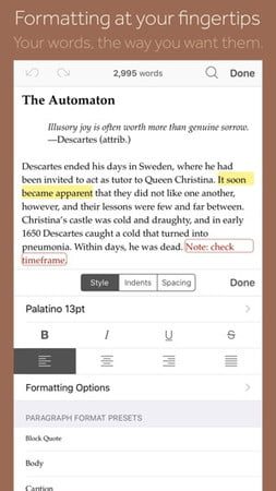 Ha llegado el momento de escribir esa novela. Scrivener es lo máximo de las apps de escritura, con una poderosa suite de herramientas y funciones estilo notepad que te ayudarán a finalmente llevar tus mejores ideas al papel. Aunque ciertamente esta app será mejor aprovechada en un dispositivo más grande, funciona sin problemas en el iPhone y puede emparejarse con un teclado inalámbrico para crear un lugar de trabajo móvil eficiente. El precio de entrada es alto ($20 dólares), aunque puedes adquirirlo en paquete con la versión para macOS, Windows y iOS con un pequeño descuento para que valga más la pena.