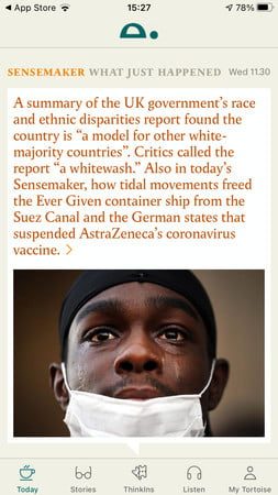 Vivimos en un mundo de noticias de última hora, pero no tenemos que llevar ese ritmo si no queremos. Tortoise se especializa en temas noticiosos más lentos examinados a mayor profundidad. Aquí no encontrarás nada de alarma; esta app ofrece una perspectiva más calmada del mundo. Olvídate de las constantes alertas noticiosas y relájate con investigaciones de lectura larga o con uno de sus eventos editoriales en vivo. Es gratuita por 30 días y despúes cuesta $10 dólares al mes.