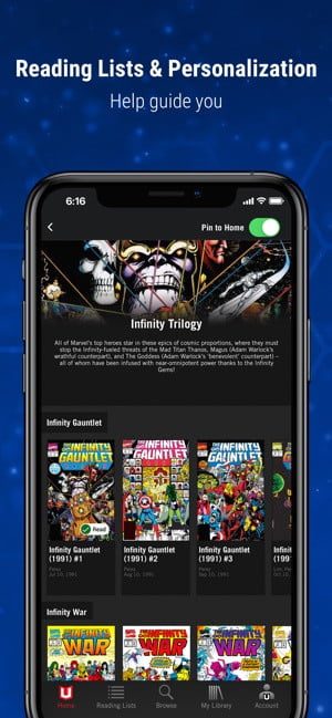 ¿Nunca es suficiente Marvel para ti? Estamos viviendo un gran momento, con películas increíbles en los cines y disponibles en casa. Pero, ¿qué pasa con el material original? Marvel tiene un catálogo de cómics enorme, y todos ellos están aquí. ¿El tamaño te intimida? No te preocupes: la aplicación tiene listas de selecciones para ayudarte a sumergirte y explorar tus héroes y villanos favoritos, y puedes descargar cómics para leer sin conexión. El acceso no es gratuito, por supuesto; te costará $10 dólares por mes (o $69 por año), pero hay una prueba gratuita de siete días.