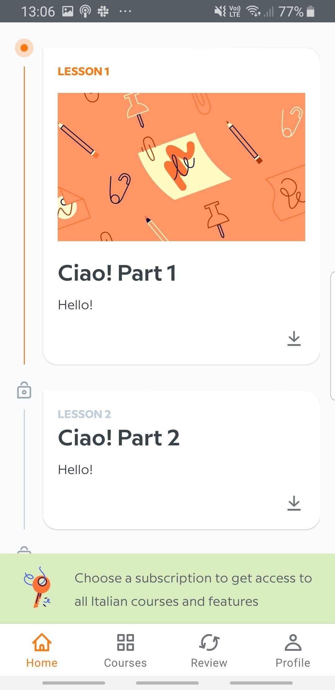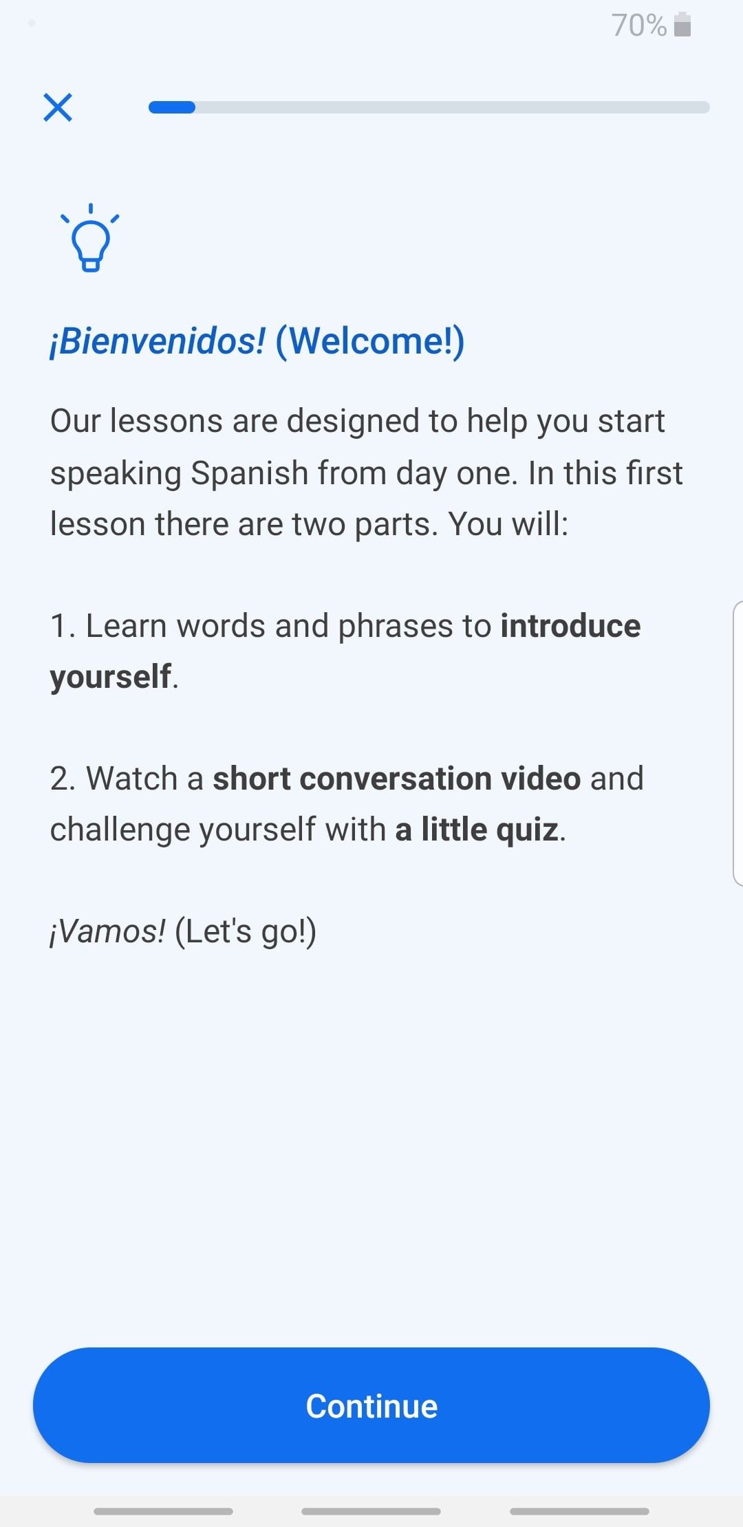 Obtendrás acceso a la primera sección de seis lecciones, una conversación y una sección de vocabulario (incluidas las conversaciones de chatbot) de forma gratuita, incluida una nueva lección diaria, cuestionarios semanales y desafíos mensuales para evaluar tu progreso, pero solo puedes aprender un idioma a la vez. Suscribirte y desbloquear todos los idiomas y características te costará desde $10 dólares mensuales o $48 dólares anuales.