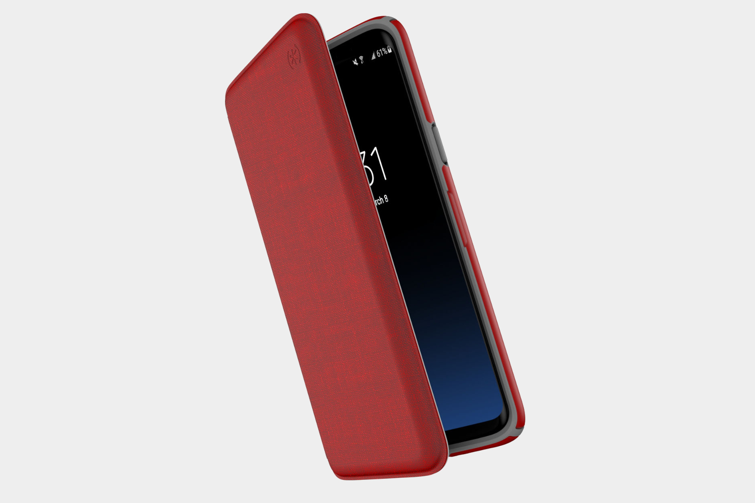 Somos grandes admiradores de la funda Presidio Grip de Speck, pero para el S9 estamos recomendamos más bien la de Folio. ¿Por qué? Porque obtendrás la misma protección contra caídas -de hasta 10 pies-, y proporciona una cobertura completa. También se pliega hacia atrás para actuar como un soporte. Dentro de la cubierta, hay una ranura oculta que se abre para ofrecer espacio para tres tarjetas. Es duradera, protege y está disponible en negro, rojo o azul.