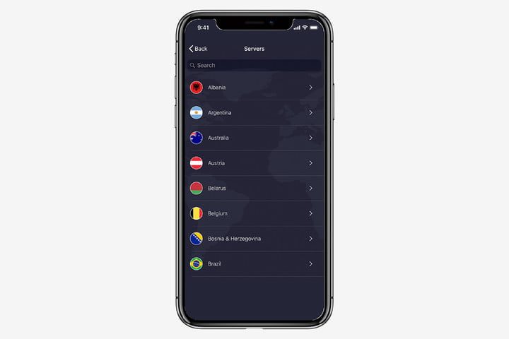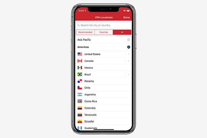 Encontrarás que la aplicación iOS es bastante fácil de usar y puedes navegar usando la ubicación y los países más populares. En algunos países como en Estados Unidos, el listado te permite conectarte por ciudades.