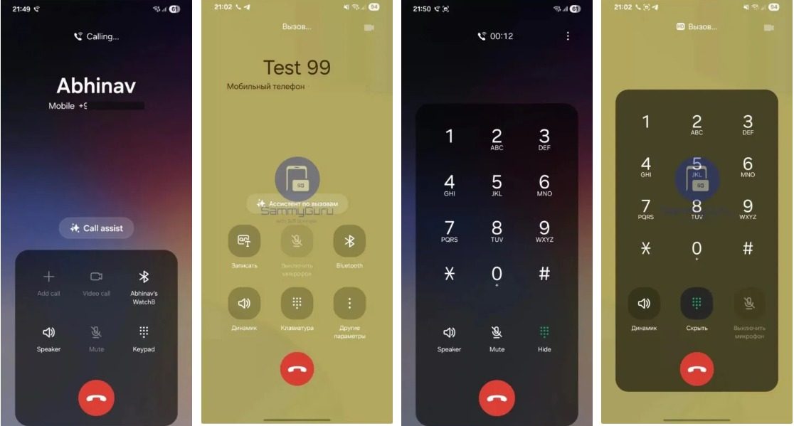 También se detectó un cambio similar en la aplicación Samsung Dialer, que podría estar cambiando a un elemento flotante en forma de píldora para cambiar entre el teclado de marcación, el historial de llamadas y los contactos. Una filtración más reciente revela una interfaz ligeramente cambiada para la pantalla de llamadas.