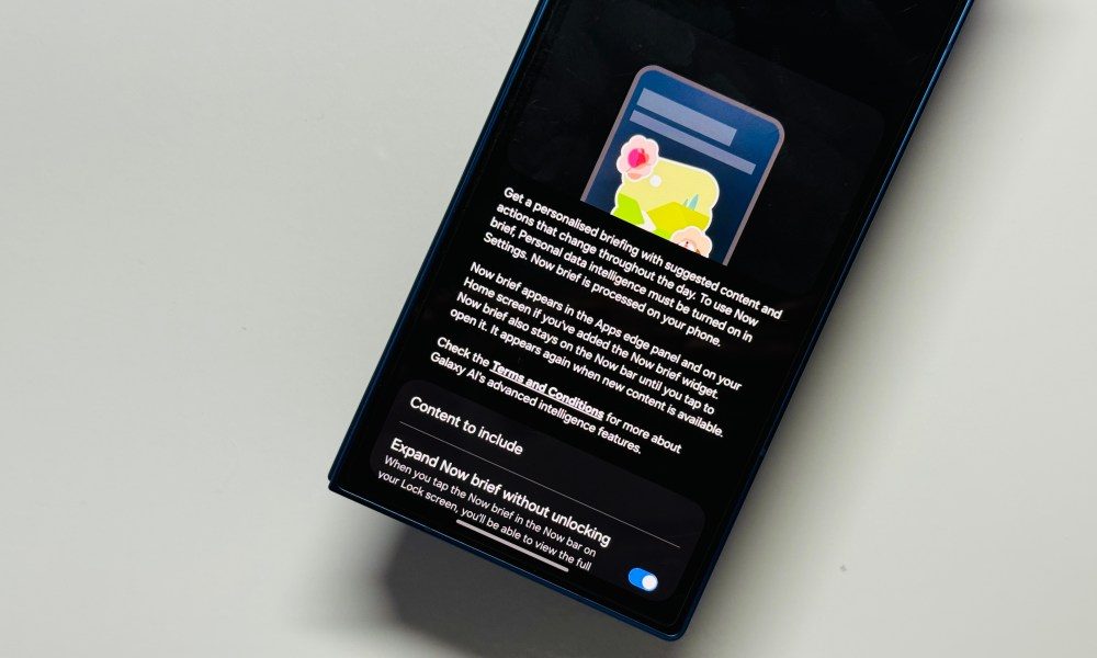 Accesible desde el panel de control de Galaxy AI en la aplicación Configuración, Now Brief funciona mejor cuando puede acceder a él directamente desde la pantalla de bloqueo. Después de todo, el propósito de esta función es brindarle información y recordatorios de actividad de la manera más conveniente posible.