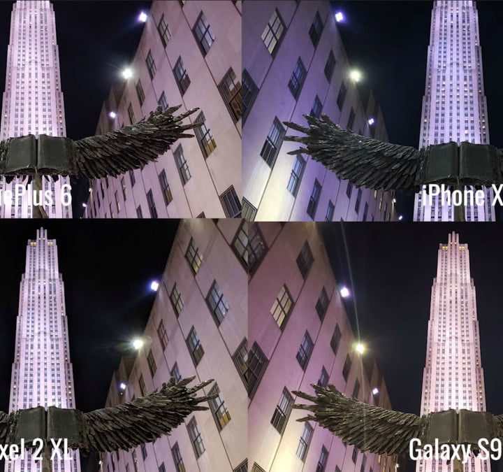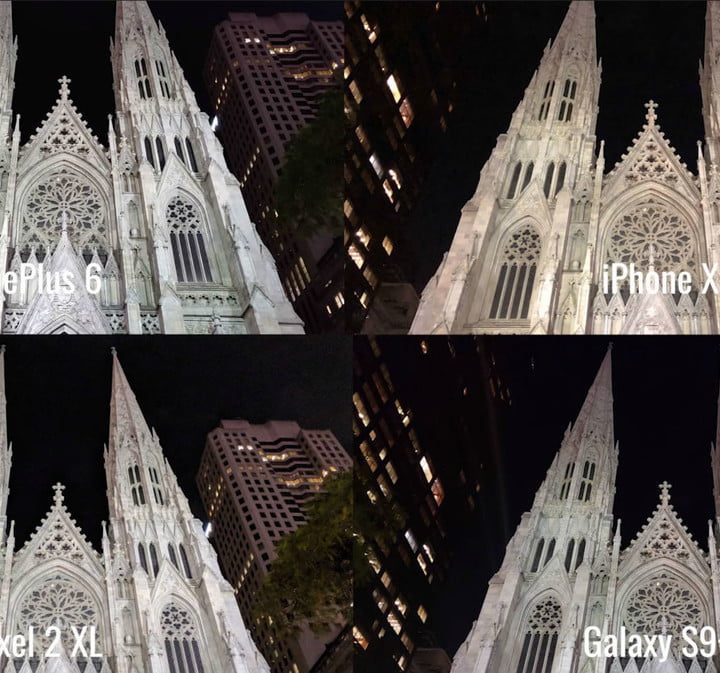 La última foto también fue tomada por la noche. El HDR de Pixel 2 XL creó la mejor foto de lejos, iluminando el edificio y los árboles en la parte posterior. Aparte de eso, el OnePlus 6 se mantuvo a la par que los demás.