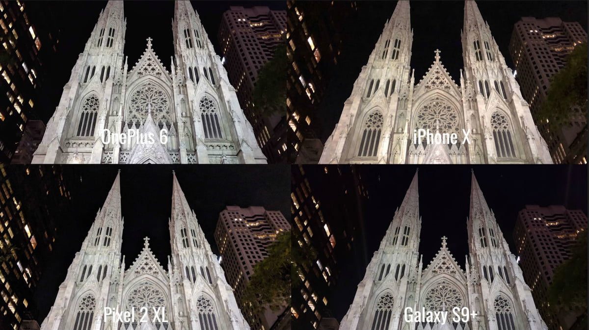 La última foto también fue tomada por la noche. El HDR de Pixel 2 XL creó la mejor foto de lejos, iluminando el edificio y los árboles en la parte posterior. Aparte de eso, el OnePlus 6 se mantuvo a la par que los demás.
