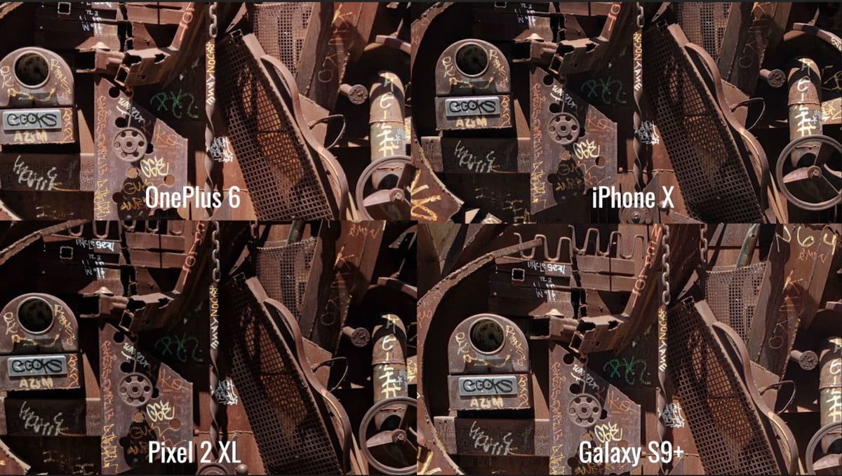 El OnePlus 6 tiene un rendimiento rápido, una pantalla enorme en un cuerpo compacto y, además, es bastante asequible. Pero ¿cómo se comporta su cámara en comparación con las de los teléfonos más emblemáticos? Decidimos poner a prueba las cámaras del OnePlus 6, Pixel 2 XL, iPhone X y Galaxy S9+. Todas las siguientes fotografías fueron tomadas en automático, en el mismo lugar y momento. Mira y compáralas con nosotros.