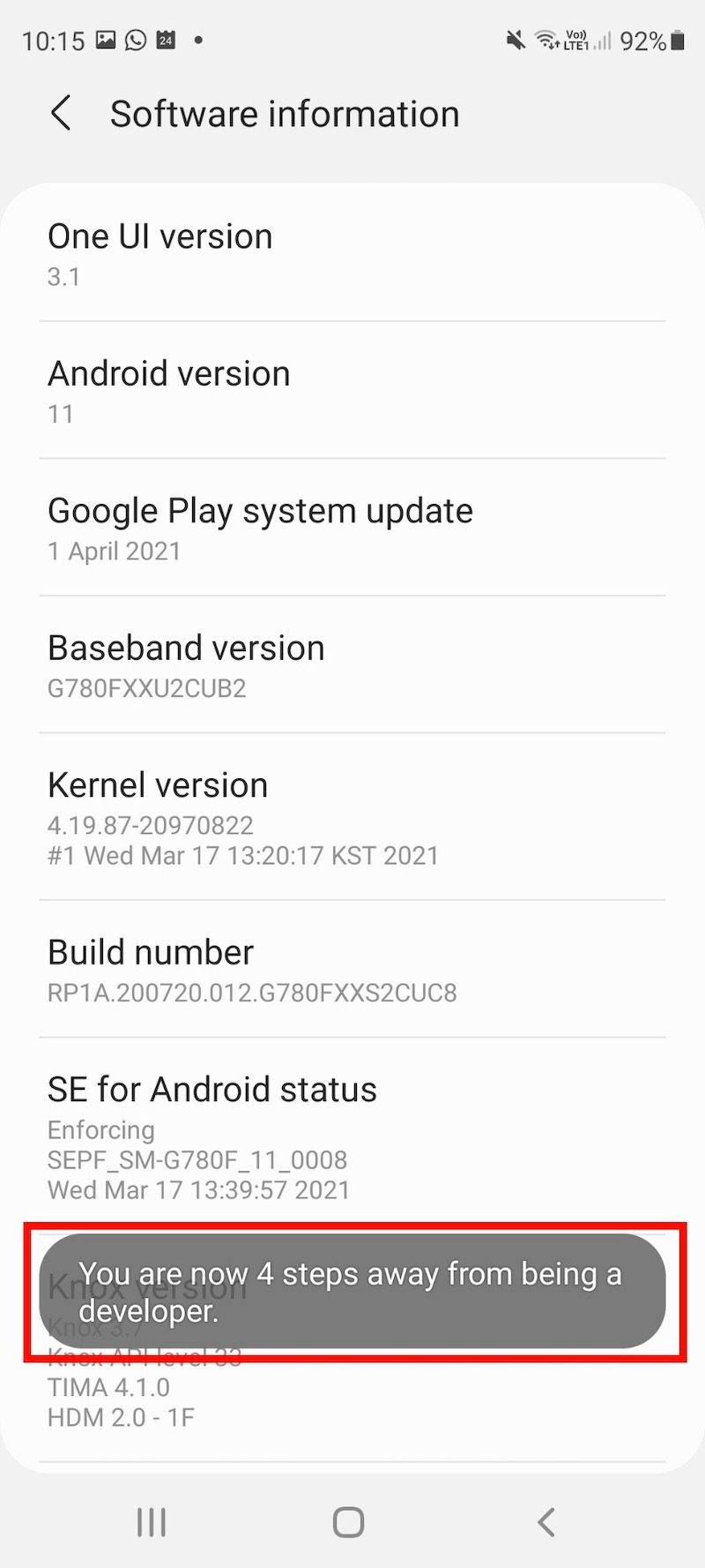 Paso 4: Una vez que las opciones de desarrollador estén activadas, verás un mensaje que dice: Ahora es un desarrollador.