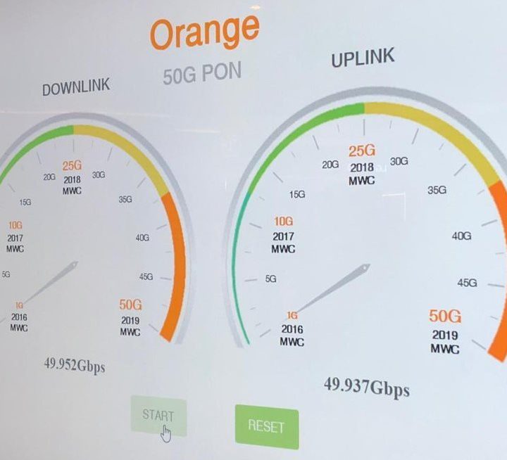 Hablando de fibra de ultra banda ancha, hicimos una prueba de velocidad en donde se alcanzaron los 50 Gbps, no solo de “bajada” de datos, pero también de “subida” de datos. Según voceros de la compañía, la empresa habría superado el récord anterior del MWC, que fue la mitad.