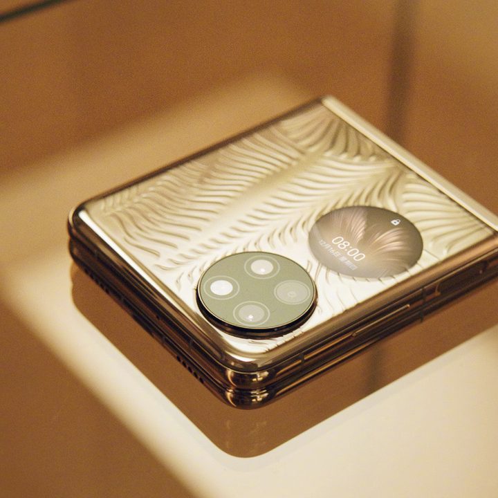 Este teléfono se mostrará el próximo 23 de diciembre y apareció en la plataforma social Weibo, en China, en algunas imágenes promocionales con la cantante Guan Xiaotong. Lo más llamativo, además de ser un plegable, son las terminaciones doradas (o plateadas). Además, parece que Huawei le da un enfoque elegante al equipo, con un patrón de diseño que no es plano sino con unas pequeñas ondas.