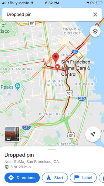 Paso 4: toca el pin para obtener indicaciones a esa ubicación y compartirlas o guardarlas.