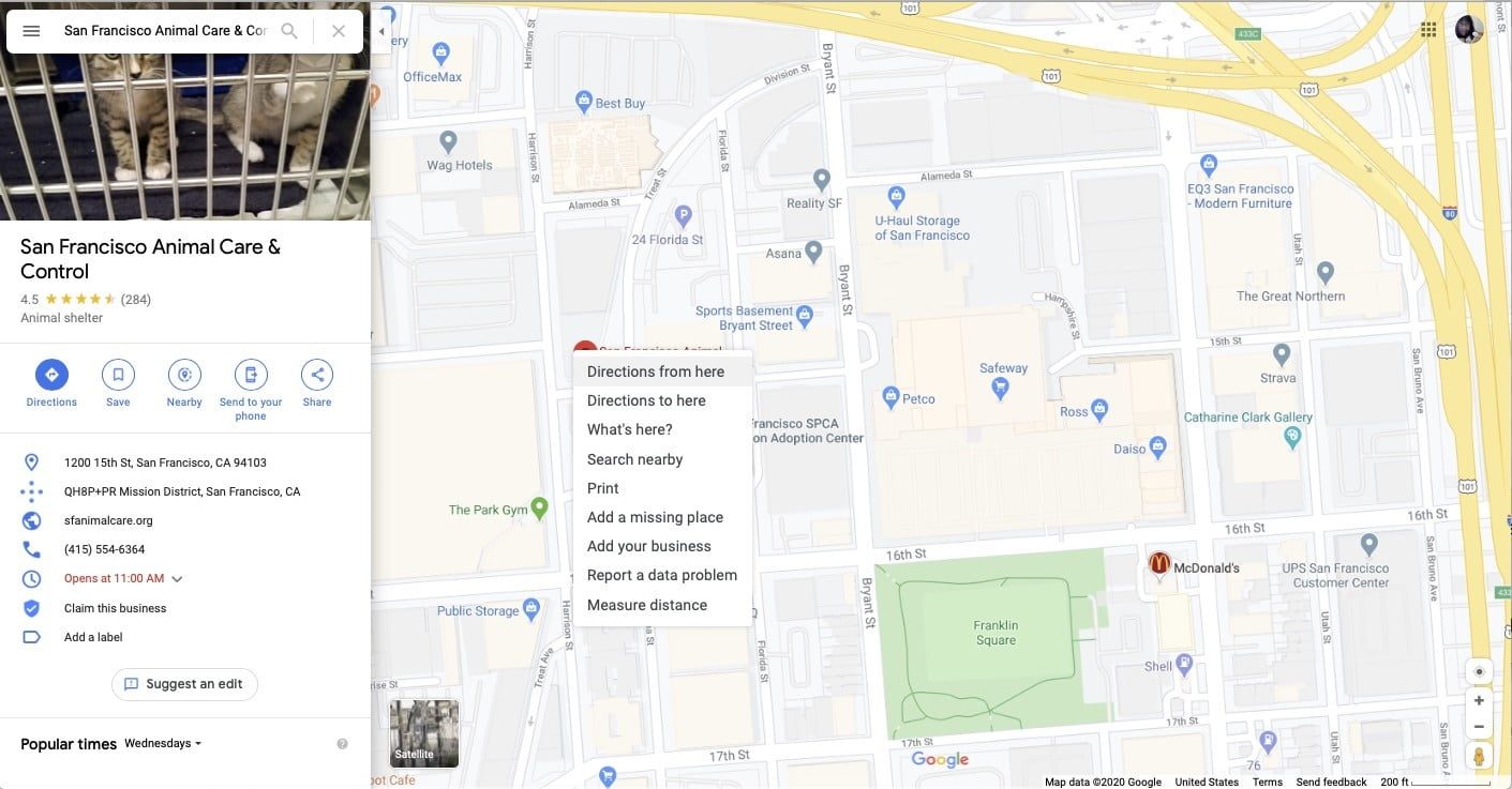 Paso 4: pulsa sobre el icono de navegación en el cuadro de información para obtener indicaciones de navegación al pin o haz clic en cualquier otro lugar del cuadro para que aparezca más información sobre la ubicación que seleccionaste.