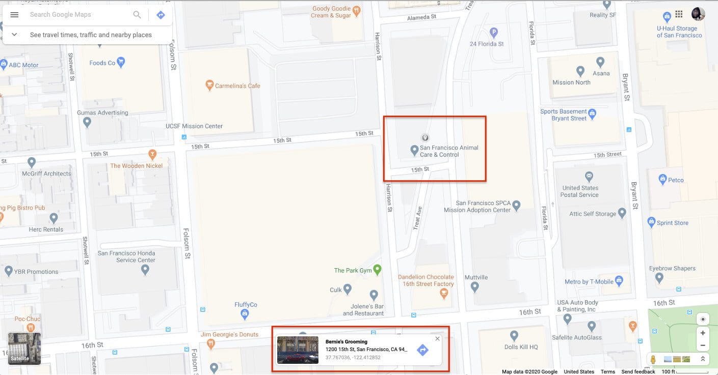 Paso 2: busca una dirección usando la barra de búsqueda en el lado superior izquierdo de la pantalla o desplázate por el mapa hasta que encuentres la ubicación donde deseas colocar un pin.