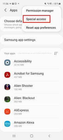 Paso 2: toca los tres puntos verticales en la parte superior derecha de la pantalla y luego selecciona Acceso especial.