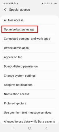 Paso 3: toca Optimizar el uso de la batería, luego toca la flecha desplegable y selecciona Todo.
