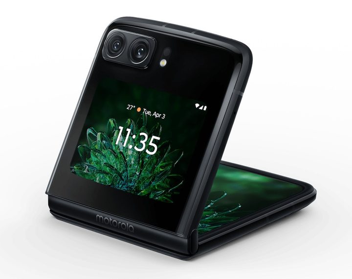 El Razr de 2022 es un celular plegable 5G, pero no es para nada pretencioso, por lo que se puede convertir en el compañero ideal de un amante de la marca. Empecemos a describirlo por su exterior: su pantalla de cubierta es denominada como Quick View y tiene un tamaño de 2.7 pulgadas (se pensó para que las personas puedan echar un vistazo a notificaciones y realizar otras tareas); en tanto que la principal es una pOLED de 6.7 pulgadas y con resolución Full HD+, además de tasa de actualización de 144 Hz, más de 1,000 millones de colores y HDR10+.