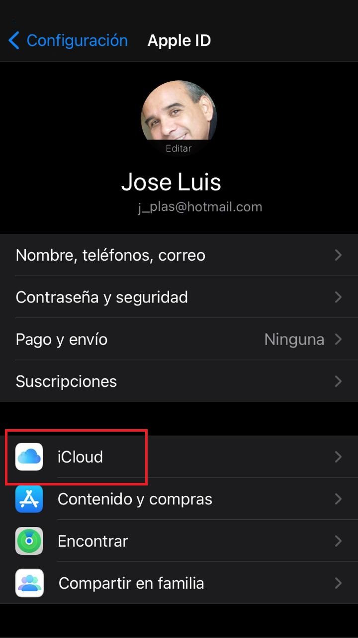 Paso 1: ve a Configuración> [tu nombre]> iCloud.