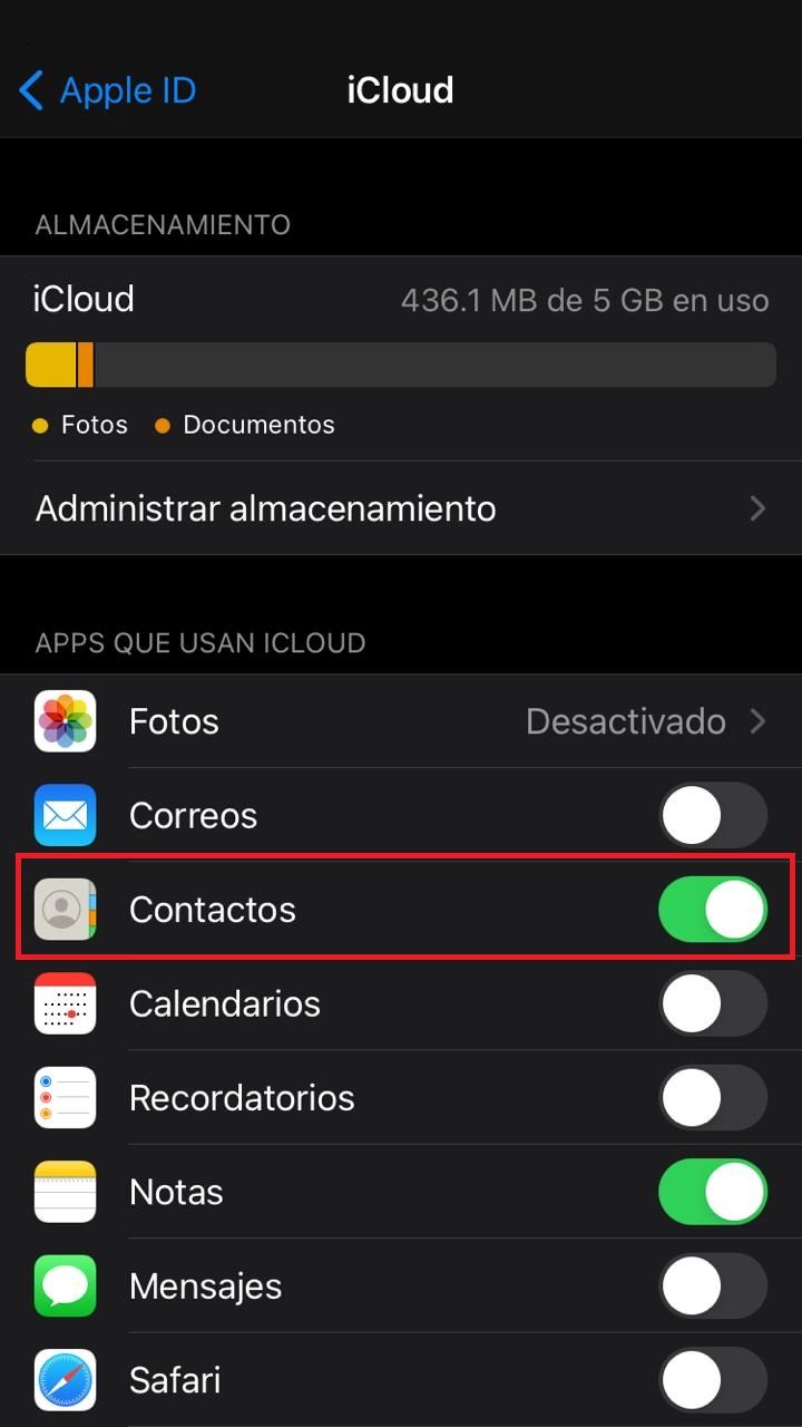 Si has perdido o eliminado un contacto por error, no hay razón para entrar en pánico. Los contactos están configurados para sincronizarse con iCloud de forma predeterminada. Puedes ir a la configuración y desactivarlos y activarlos nuevamente para permitir que se vuelvan a sincronizar con tu iPhone.