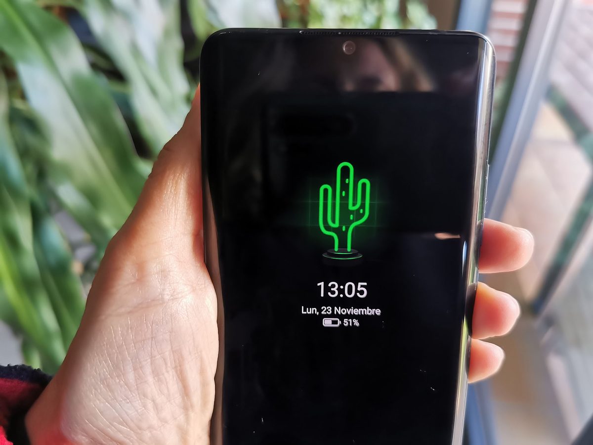 La pantalla de 6.47 pulgadas AMOLED está ligeramente curvada en los costados —de forma muy similar a la del Huawei P30 Pro— y ofrece una resolución FHD+ (2,340 x 1,080) y es compatible con HDR 10. Muestra unos colores vivos, con brillo y nitidez, y se defiende bien con el brillo a mitad del nivel. Xiaomi da la opción de configurar la pantalla siempre activa con iconos predeterminados, un modo lectura con una luz más cálida y menos agresiva con los ojos. Es una pantalla excelente por su precio.