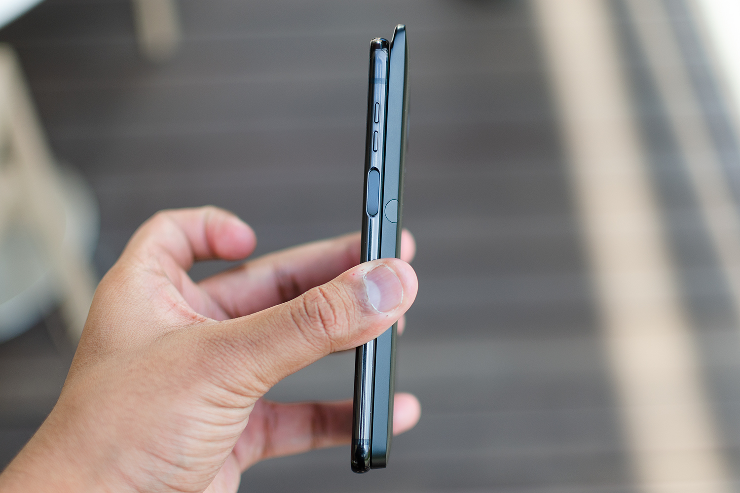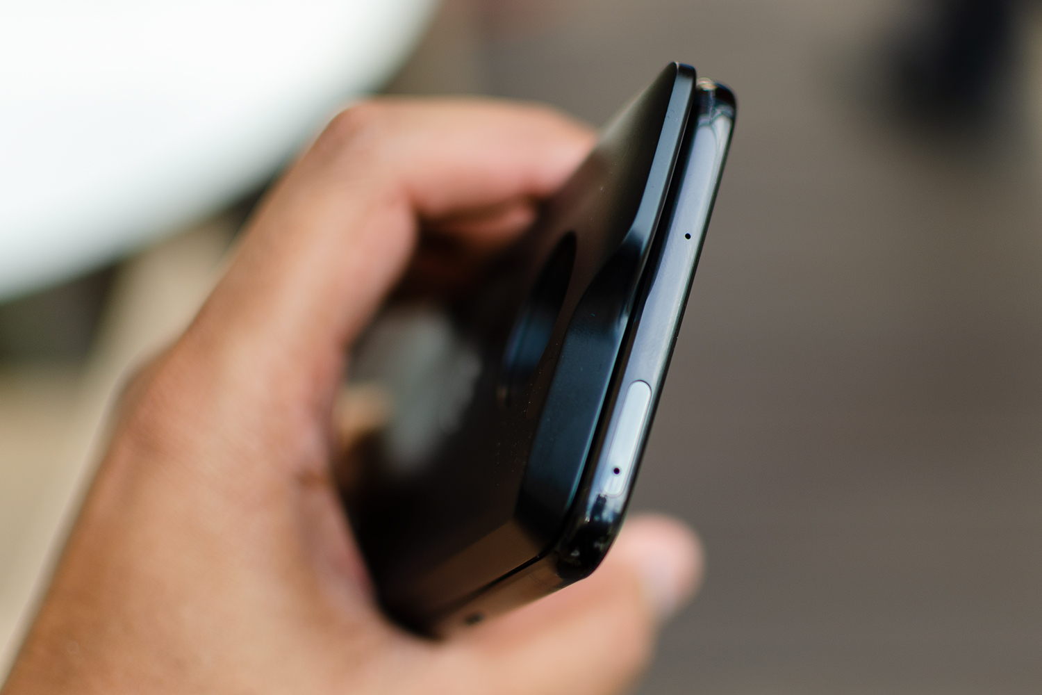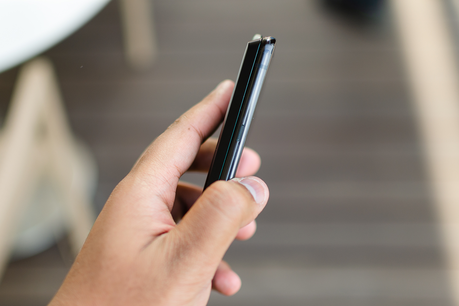El sensor de huellas dactilares está en el borde derecho, lo cual es inusual, pero estamos gratamente sorprendidos de lo bien que funciona. No hay conector para auriculares, pero hay un convertidor Type-C de 3.5 mm a USB en la caja. La mayor decepción es la bocina: es solo un altavoz mono en la parte superior, no se pone fuerte, y el audio suena metálico. Definitivamente querrás el mod de bocina si quieres transmitir música con este teléfono.