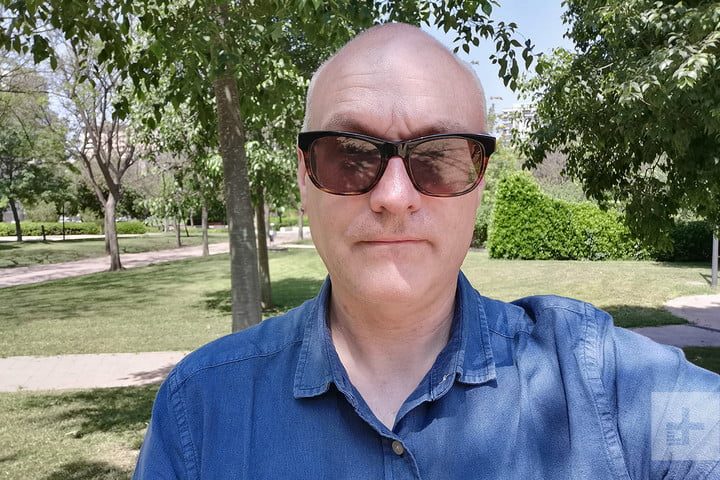 La cámara selfie está oculta dentro de la pantalla hole-punch del frente. Tiene 32 megapixeles, pero no maneja muy bien las situaciones brillantes, y aunque hay bastantes detalles los tonos de piel se ven mucho más claros que en la vida real. El modo Retrato no siempre funcionó en la versión que revisamos. Probablemente sea un problema de software.