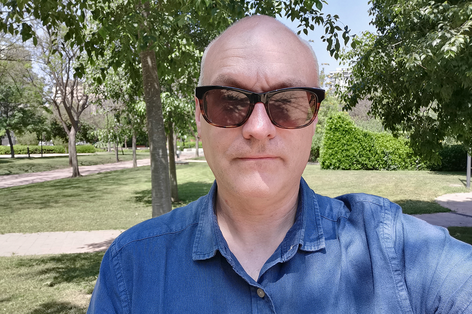 La cámara selfie está oculta dentro de la pantalla hole-punch del frente. Tiene 32 megapixeles, pero no maneja muy bien las situaciones brillantes, y aunque hay bastantes detalles los tonos de piel se ven mucho más claros que en la vida real. El modo Retrato no siempre funcionó en la versión que revisamos. Probablemente sea un problema de software.