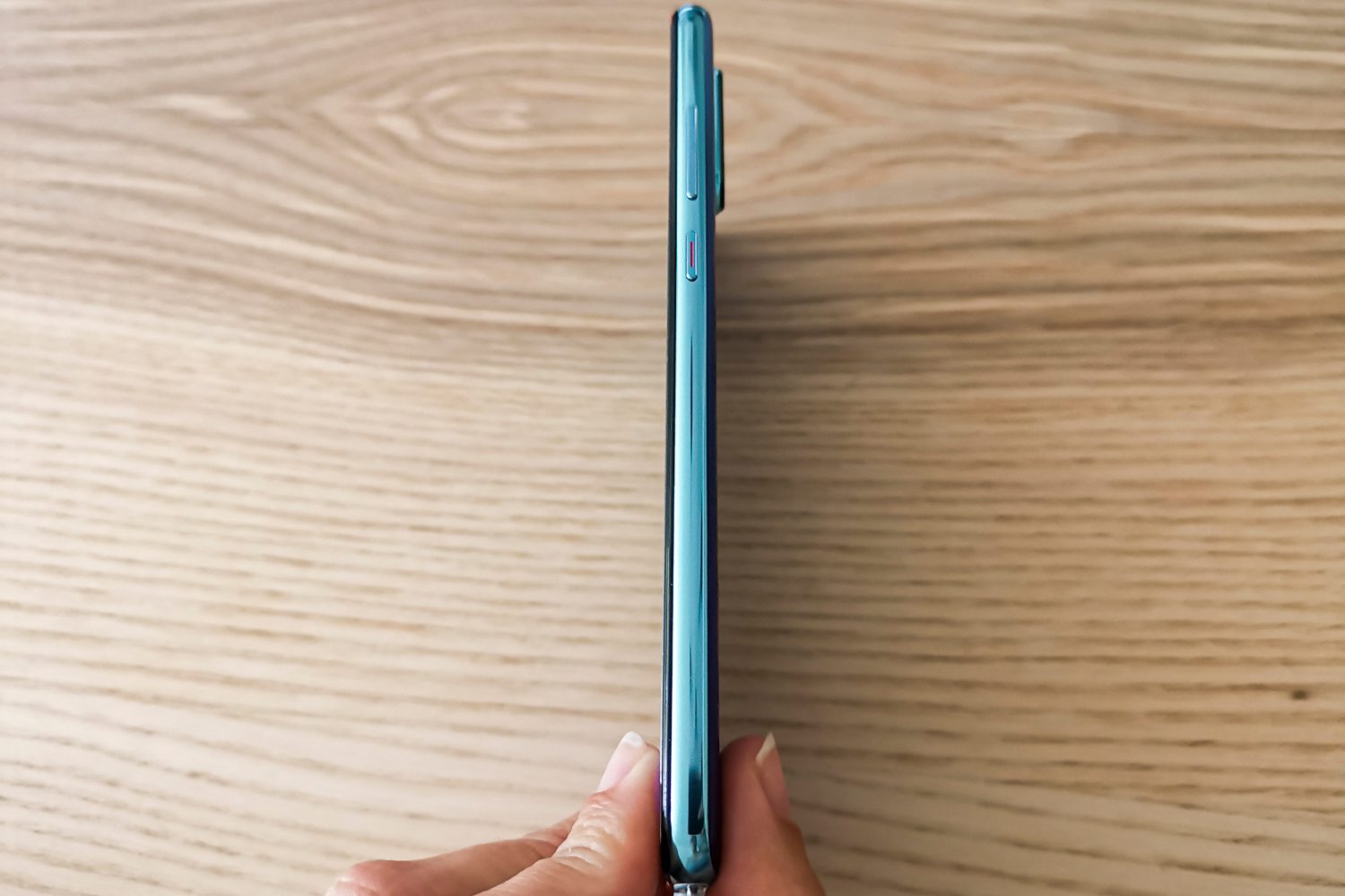 Sin poder evitarlo, lo primero en lo que nos fijamos en un teléfono es en el físico, es decir, su diseño. En este caso, el del Huawei P30 la verdad es que nos gusta. Está disponible en tres colores distintos: Nácar, Aurora y Negro. El teléfono que pudimos probar fue el de color Aurora y es un degradado de azules muy bonito y diferente. Además, la parte frontal cuenta apenas con una pequeña perforación en el centro para la cámara selfie y los biseles o marcos son muy reducidos. Los laterales, derecho e izquierdo, son más curvos, respecto a la parte superior e inferior. En el lateral izquierdo encontramos, además, la ranura para la tarjeta SIM, mientras que en el derecho se encuentran dos botones, el de volumen y el de apagado y encendido, como otros modelos de Huawei, como el Huawei P30 Pro y el Huawei Mate 20 Pro.