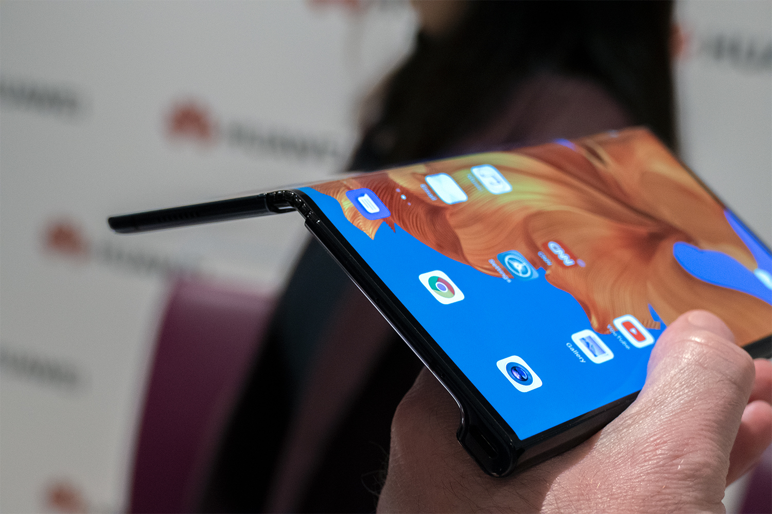 Lo más impresionante fue la forma en que cambia sin problemas entre pantallas, a pesar de que técnicamente solo tiene una sola pantalla. La reproducción de videos en la gran pantalla desplegada cambió rápidamente a la pantalla principal cuando Yu cerró el teléfono, y luego a la pantalla trasera cuando giró el Mate X. Pudimos utilizar controles por gestos, que funcionaron con suavidad, la pantalla se sintió normal y no hubo experiencias de navegación negativas . Sin embargo, esto no está del todo listo para el lanzamiento, y en otras demostraciones hemos visto que el software se confunde, pero nuestras primeras impresiones son muy positivas.