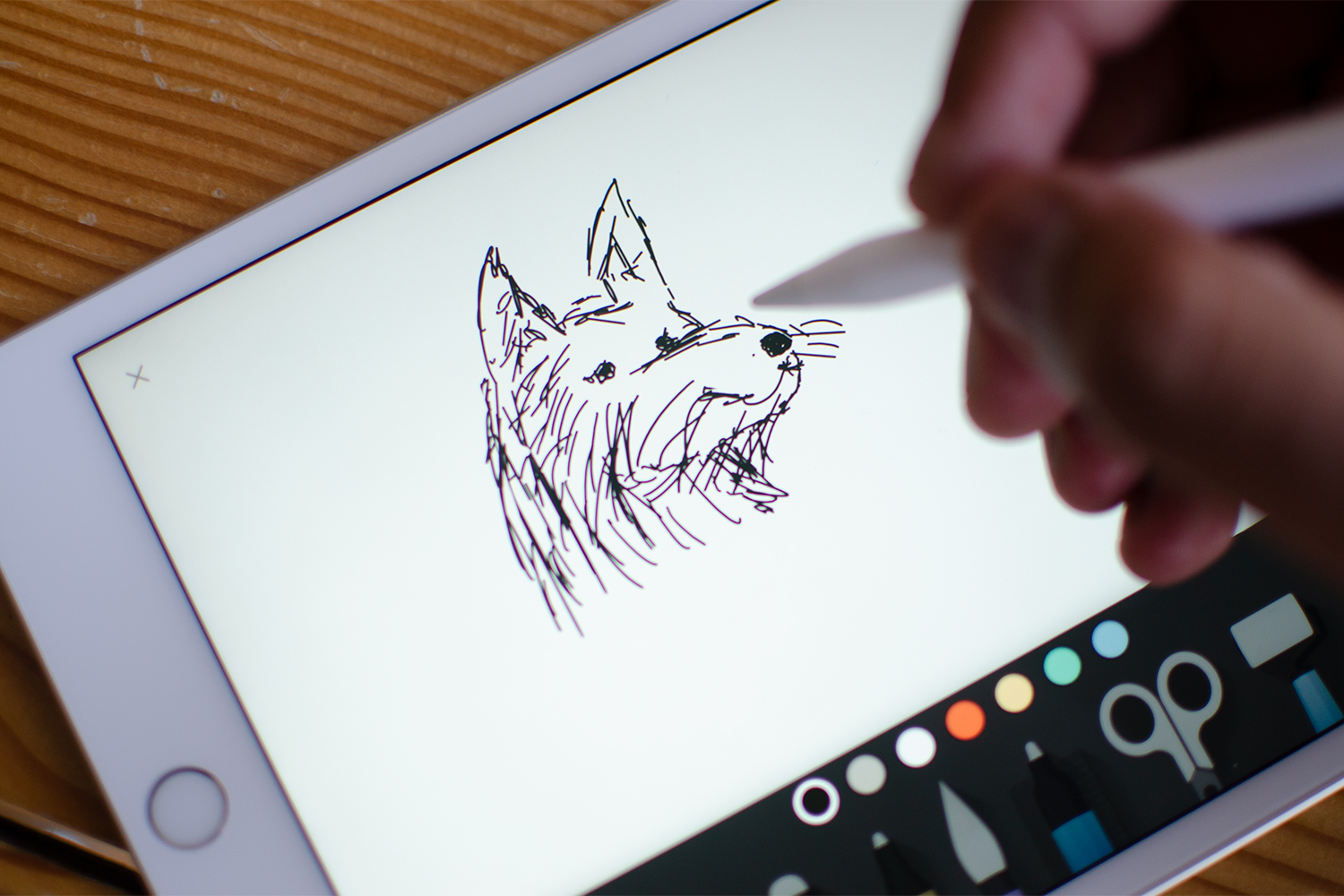 Este es el Apple Pencil original, no el modelo más nuevo de segunda generación que solo funciona con el iPad Pro 2018. Sigue siendo fantástico usarlo en aplicaciones de dibujo. Es sensible, y la tecnología que permite no detectar la palma de tu mano es una de las mejores en el mercado, ya que puedes apoyarla con tranquilidad mientras utilizas el Pencil sin activar la pantalla.