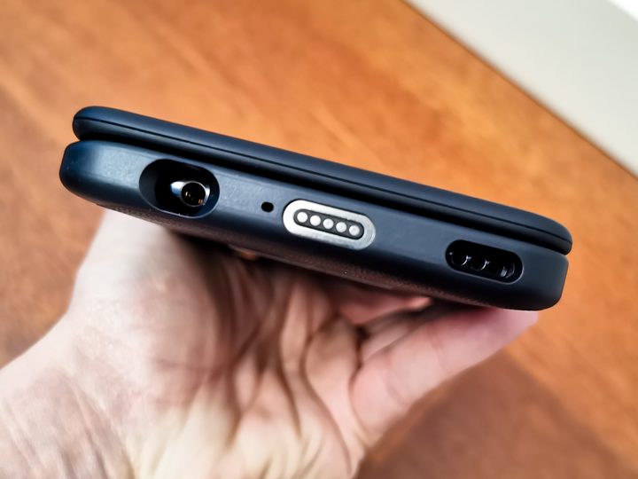 El teléfono incorpora una batería de 4,000 mAh para alimentar a las dos pantallas. Esto supone un gasto extra que a la fuerza notarás cuando utilices la pantalla secundaria, especialmente con un uso intensivo de la misma. Como el puerto USB-C queda ocupado al introducirlo en el accesorio, cuando lo tiene puesto se recarga mediante un pequeño adaptador magnético que viene incluido.