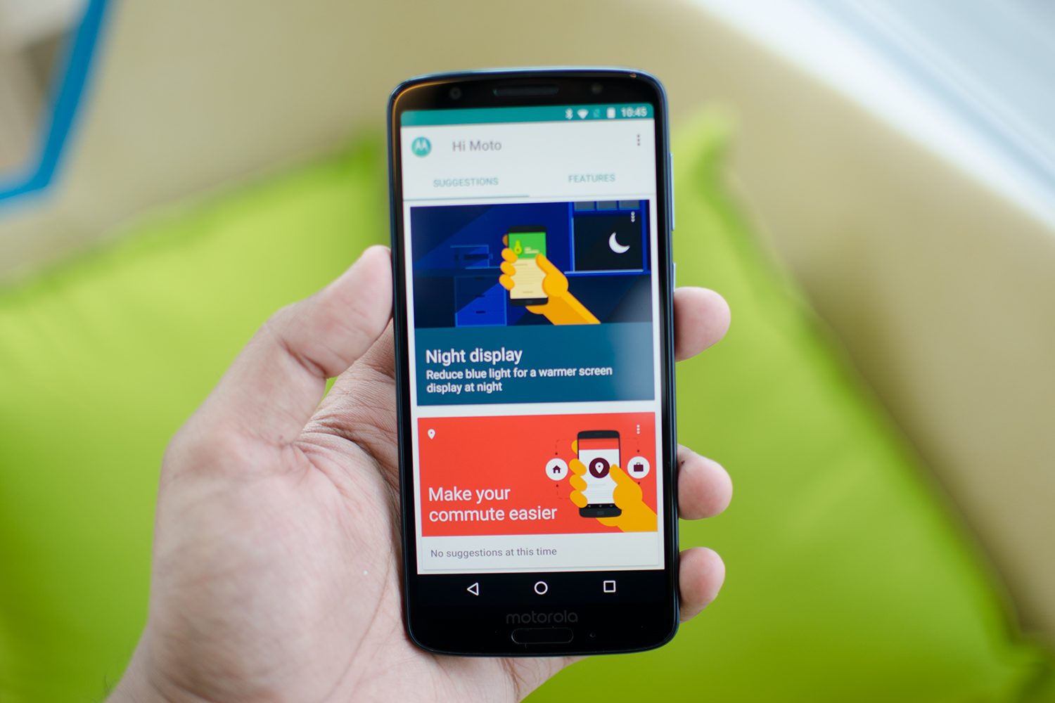 No hay mucho software de Motorola instalado, y la interfaz de usuario es muy similar a la de Android. Motorola ofrece las mismas acciones de Moto que antes, con características que incluyen la capacidad de mover la mano sobre la pantalla para ver las notificaciones; navegación con un solo botón usando el sensor de huellas dactilares frontal en el G6; un gesto para encender la linterna o para abrir la cámara, y más.
