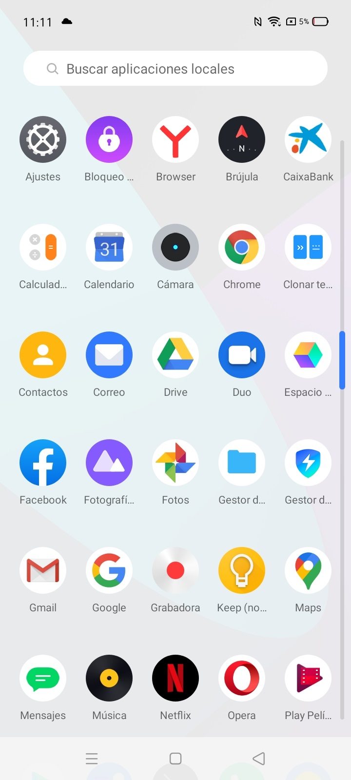 Basado en Android 10 personalizado con Realme UI, este smartphone viene con varias aplicaciones de terceros (Facebook, CaixaBank y Opera son las más conocidas en España) y las habituales herramientas (incluida radio FM).