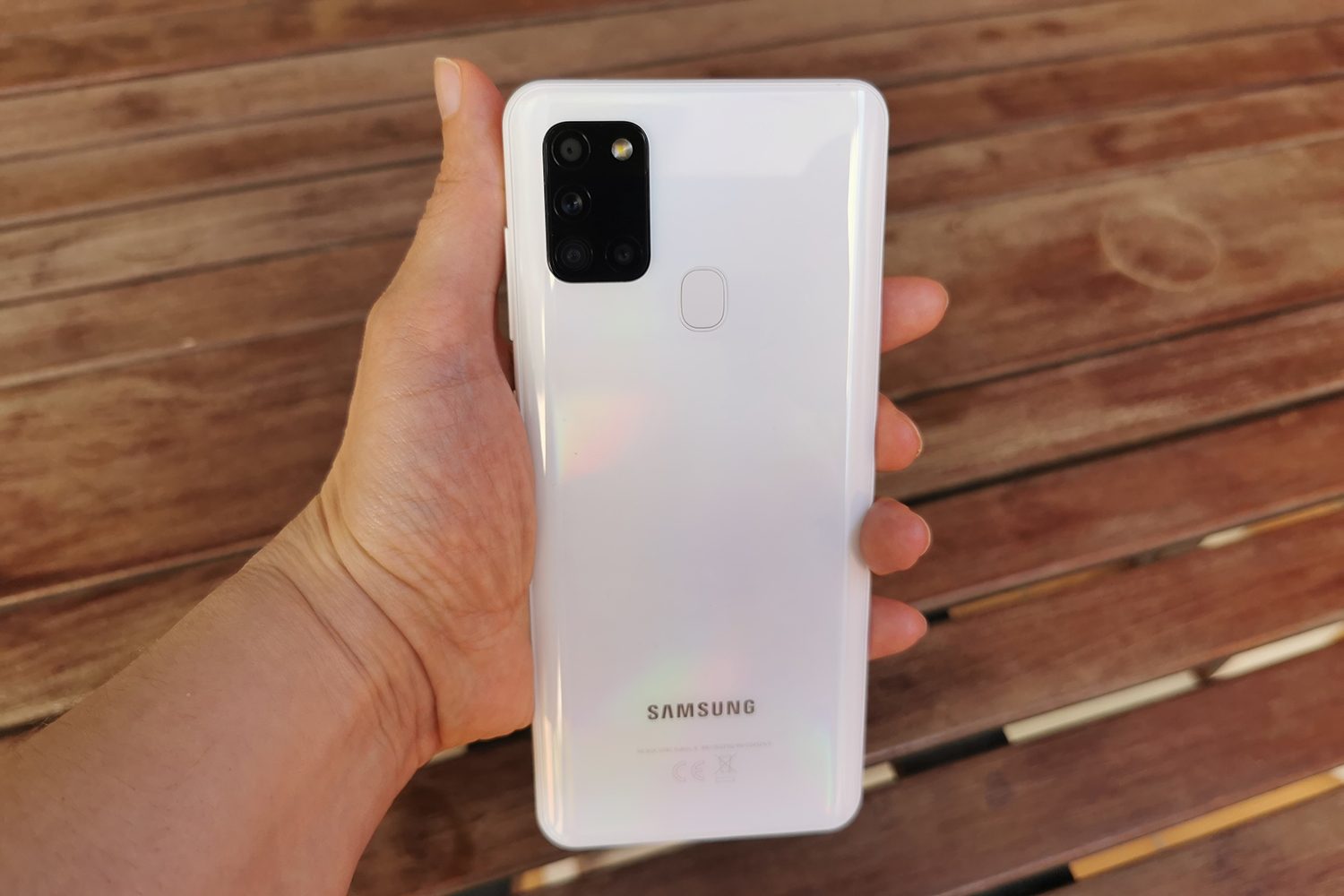 Económico no siempre significa baja calidad. El Galaxy A21s es un ejemplo de ello. Con un diseño esbelto sin lados curvos y un aspecto muy actual, el acabado de la parte posterior, blanco, brilla sin destellos ni efectos de luz y le da un aire premium al teléfono, no parece plástico a la vista. Que el marco y los botones sean del mismo color le da un toque minimalista, que no hemos visto en otros teléfonos.