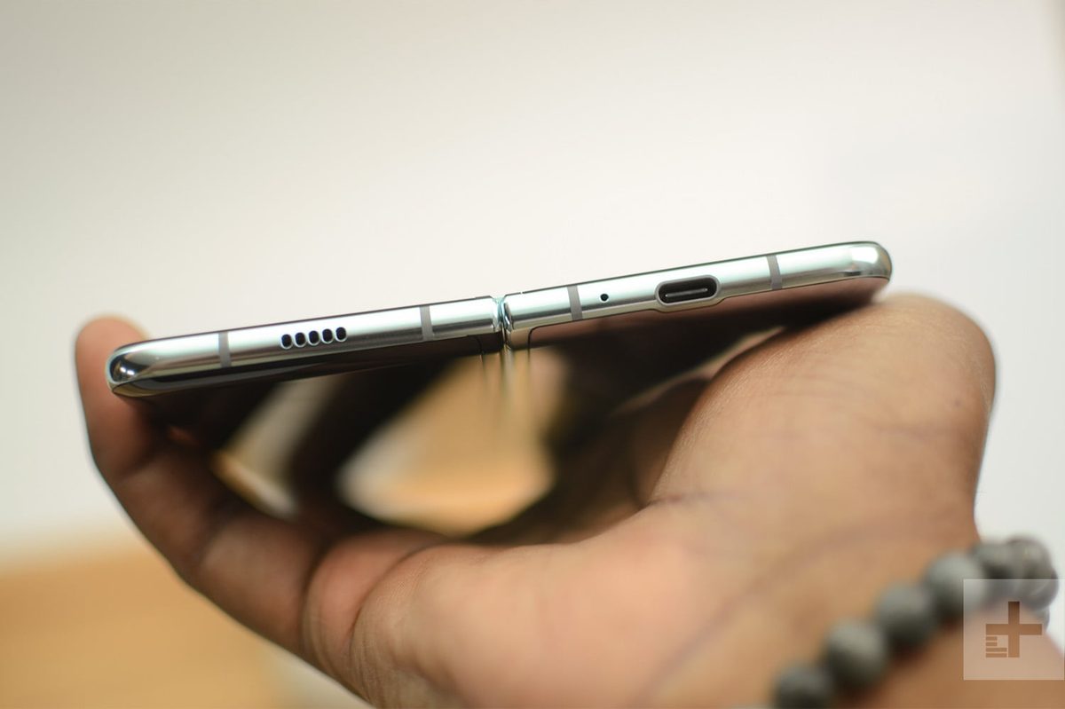 La bisagra se oculta al abrir el Fold. En el otro extremo encontrarás el botón de encendido y el control de volumen, así como un escáner de huellas dactilares similar al del Galaxy S10e.