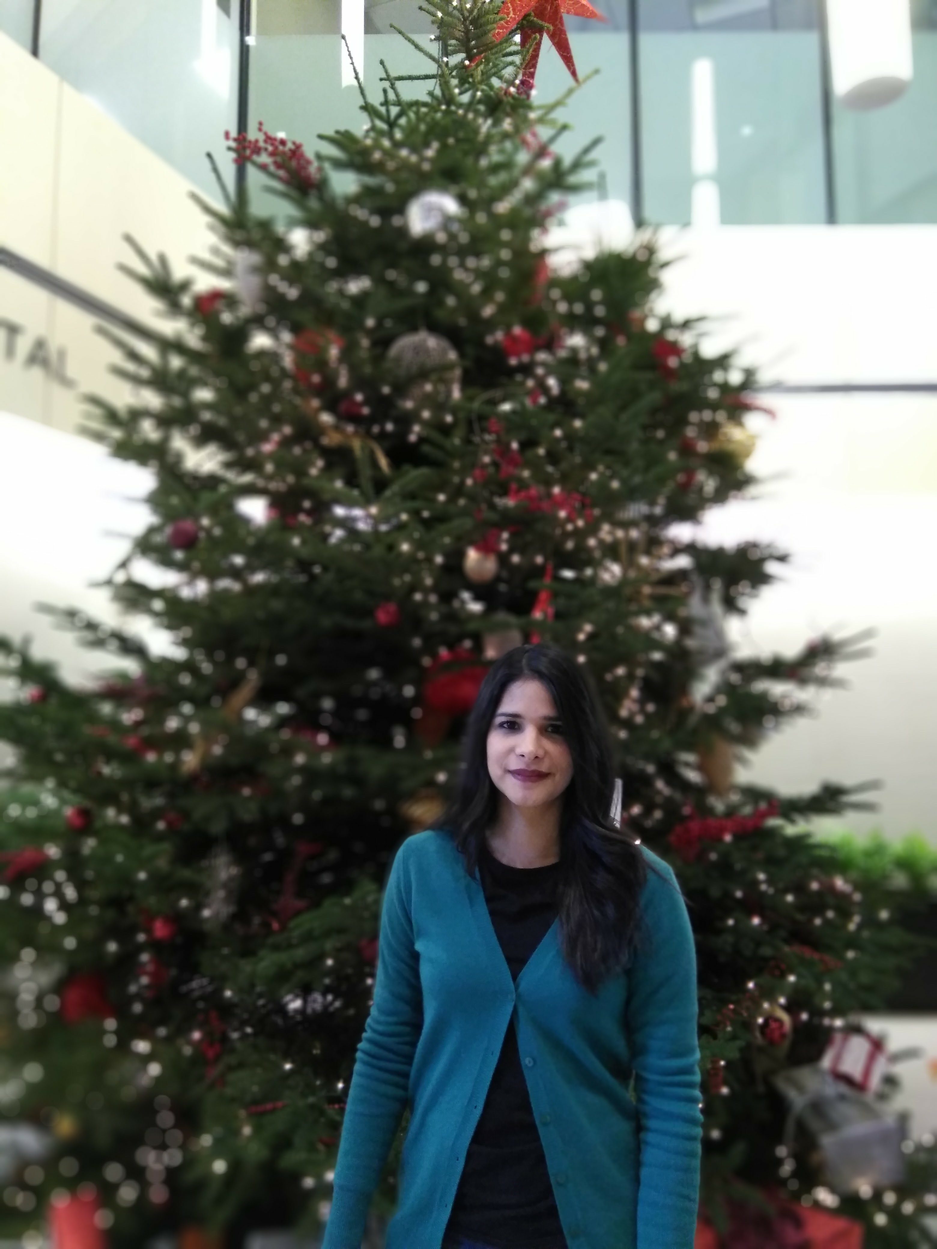 Aún así debes saber que en algunas ocasiones el escenario es muy difícil para que la cámara en este celular brinde la foto en modo retrato perfecta. En la siguiente foto, verás que la cámara tuvo dificultades en poner borrosa la punta del árbol de navidad y algunas ramas.
