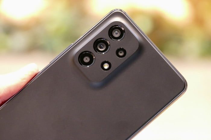 El Samsung Galaxy A53 es parecido al A52 del año pasado, con un display genial de borde a borde, interrumpido por un notch circular en la parte superior de la pantalla, el cual alberga la cámara para selfies. La protuberancia de la óptica trasera, que fue lo más destacado con el A52, se perfeccionó aún más con el A53; ahora se integra mejor en la parte posterior, con un aspecto más ordenado y natural.