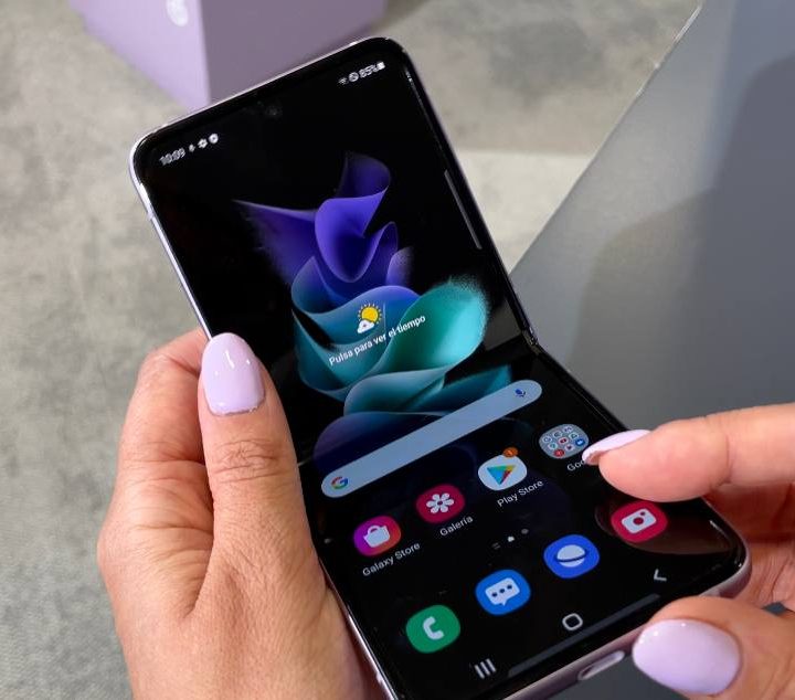 Samsung también renovó su otro formato de teléfono plegable con forma de concha para presentar el nuevo Galaxy Z Flip 3. Este celular llega en varios colores (crema, verde, negro y lavanda) y tiene un pantalla principal de 6.7 pulgadas AMOLED con tasa de actualización de 120 Hz. Su pantalla exterior es cuatro veces más grande que la del modelo anterior (casi dos pulgadas en total) y ahora permite ajustar el volumen o el brillo desde ella, así como obtener hasta cuatro líneas de notificaciones o hacer pagos sin abrir necesidad de abrir el teléfono.