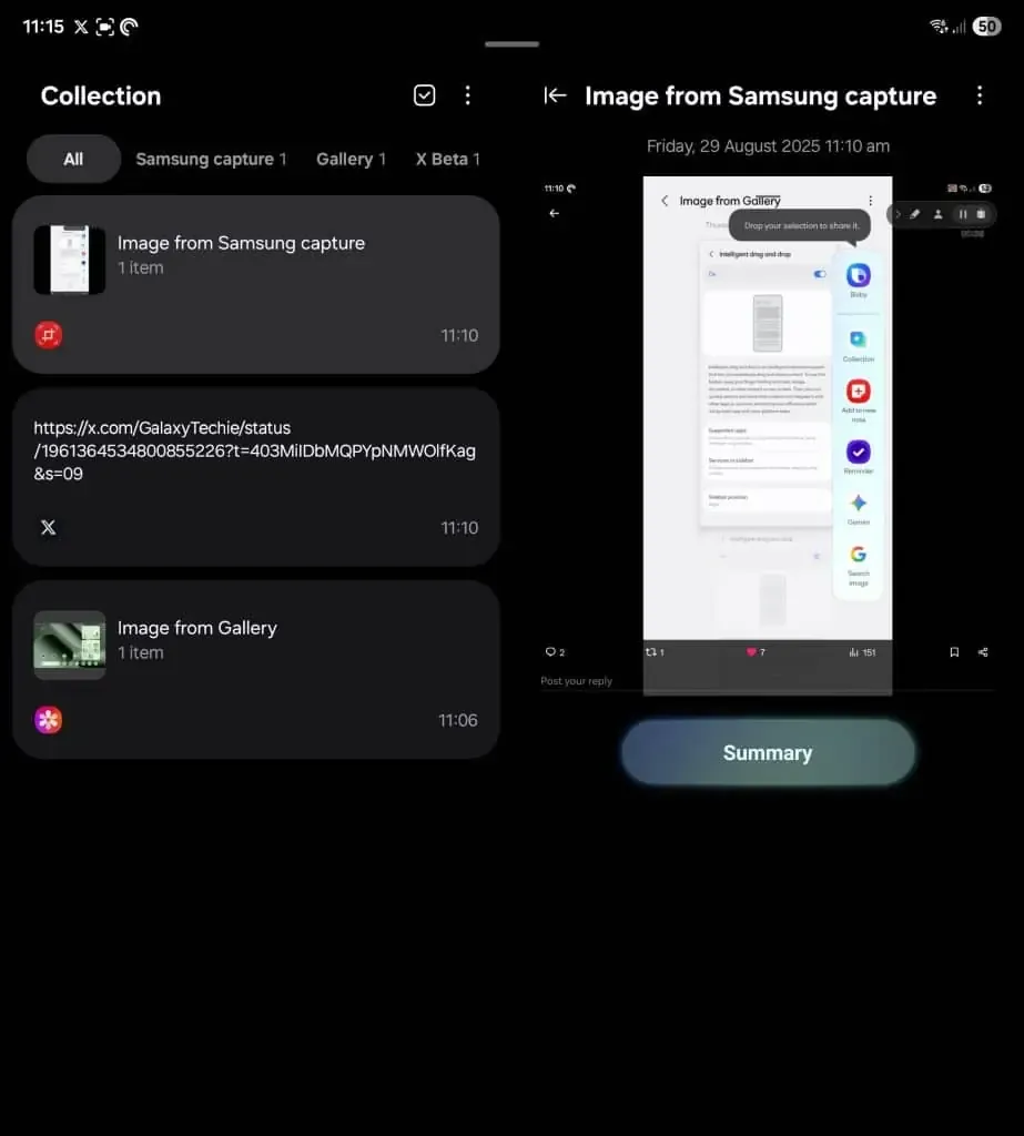 La característica fue descubierta por Galaxy Techie en X (a través de SammyGuru), los propietarios de Galaxy pueden instalar un APK de la aplicación Collections que funciona en dispositivos globales. Antes de comenzar, sepa que su dispositivo deberá ejecutarse en One UI 6 o posterior.