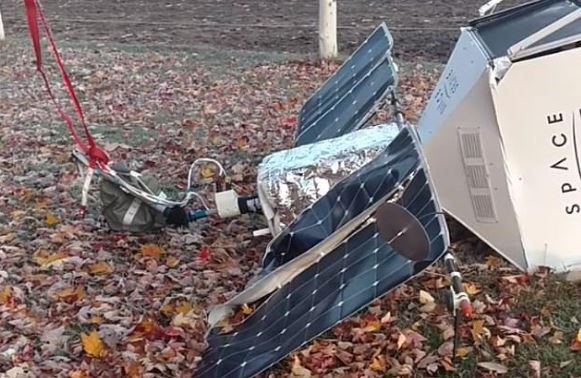 Nancy Welke, una granjera de la ciudad de Merrill, Michigan, dijo haber escuchado un fuerte ruido detrás de su casa, mientras se encontraba cuidando a sus caballos. Cuando se acercó a ver de qué se trataba, se dio cuenta que un objeto con dos paneles solares se había estrellado allí. El dispositivo tenía las palabras ‘Space Selfie’ en un panel y también había una pieza de escombros blancos con el logotipo de Samsung.