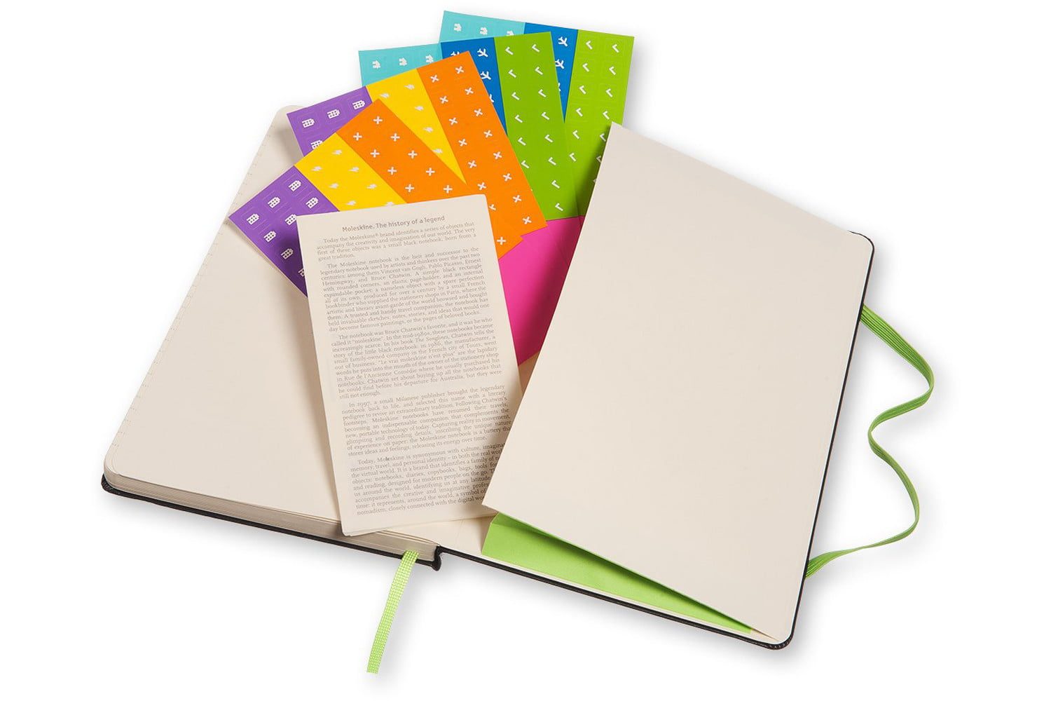 Con el Evernote Smart Notebook de Moleskine puedes escribir y dibujar. Con un gancho en la aplicación de toma de notas, el Smart Notebook utiliza la función de Evernote para capturar páginas individuales con tu teléfono o tableta. Funciona con la tecnología Moleskine Pen+ y Moleskine Ncode integrada en cada página que permite transferir todas tus notas de una página a otra en tiempo real a través de la aplicación Moleskine Notes. Smart Stickers y Smart Tagging te permiten capturar una página y ponerle diferentes etiquetas para facilitar la organización de tus notas y la sincronización de tus espacios de trabajo digitales y analógicos. Una vez en Evernote, puedes buscar tus notas manuscritas por palabra clave, etiqueta o simplemente navegar por ellas.